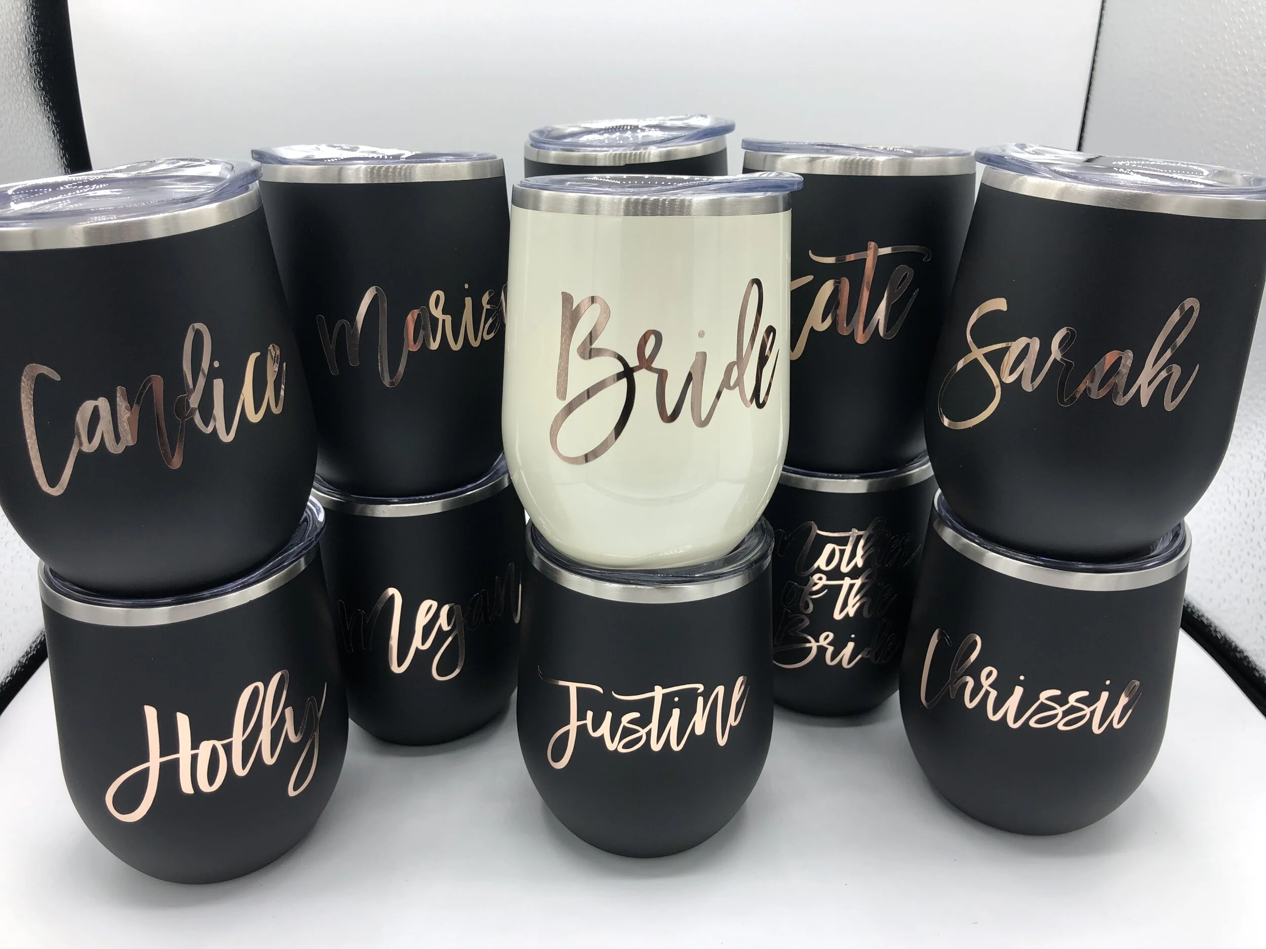 Set of laser engraved wine tumblers | buzzed, lit, toasted, hammered